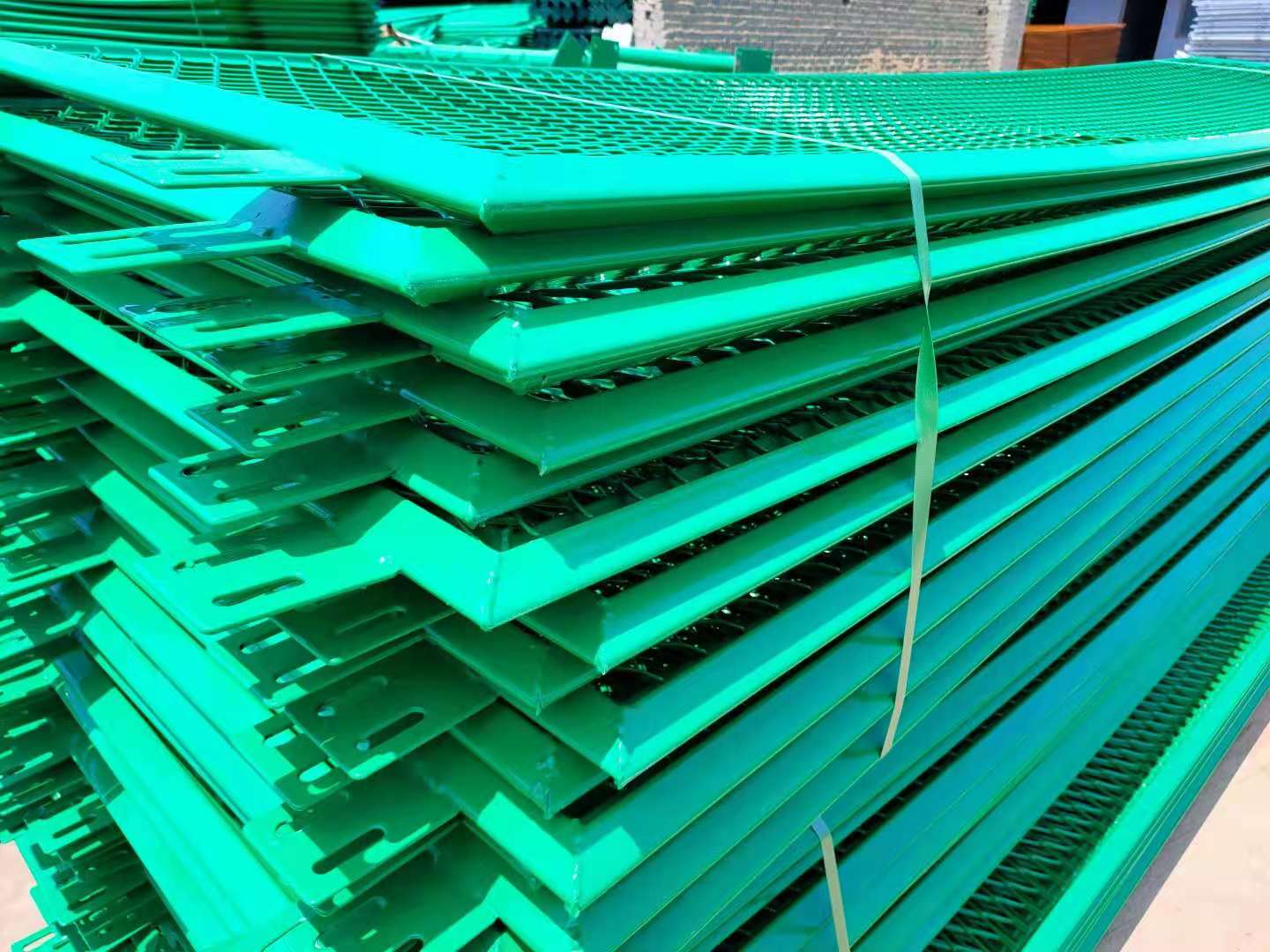 高速公路防眩網(wǎng)材料要求:采用鋼板網(wǎng)、異型管、邊耳、圓管焊接而成,顏色為果綠色,色號(hào)見(jiàn)RAL,色卡RAL6029每根立柱迎車方向貼40x180mm的類黃色反光膜,豎向粘貼,反光膜上部距立柱項(xiàng)部20cm。