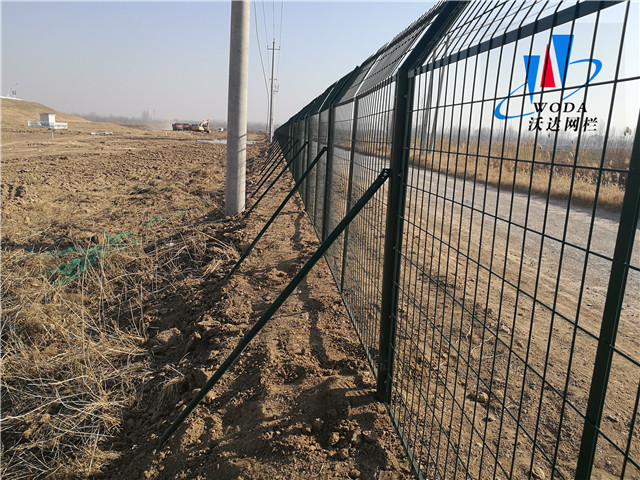 在安裝框架隔離柵都想安裝得平整筆直,但是這樣很容易給柱子造成比較大的壓力。所以在拐角地方需要從兩方面進行斜撐,以防止兩個面上的拉力導致角柱彎曲變形。