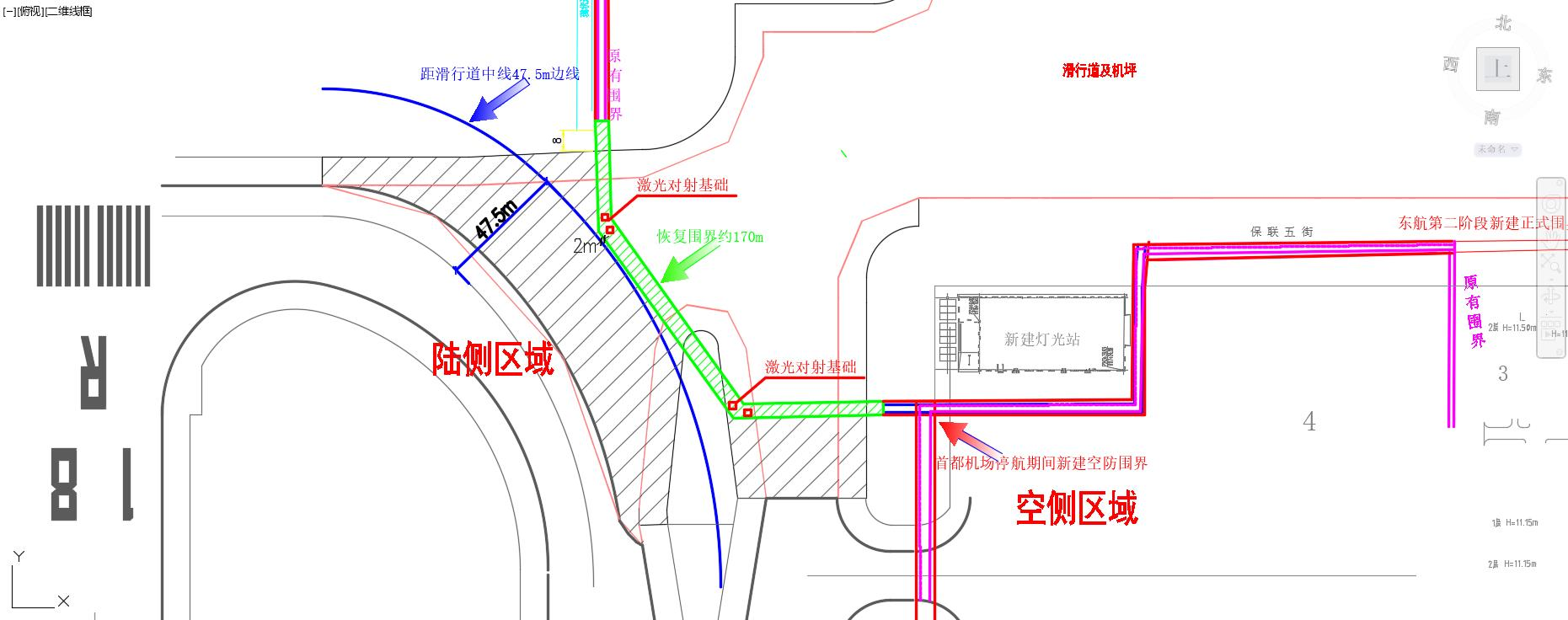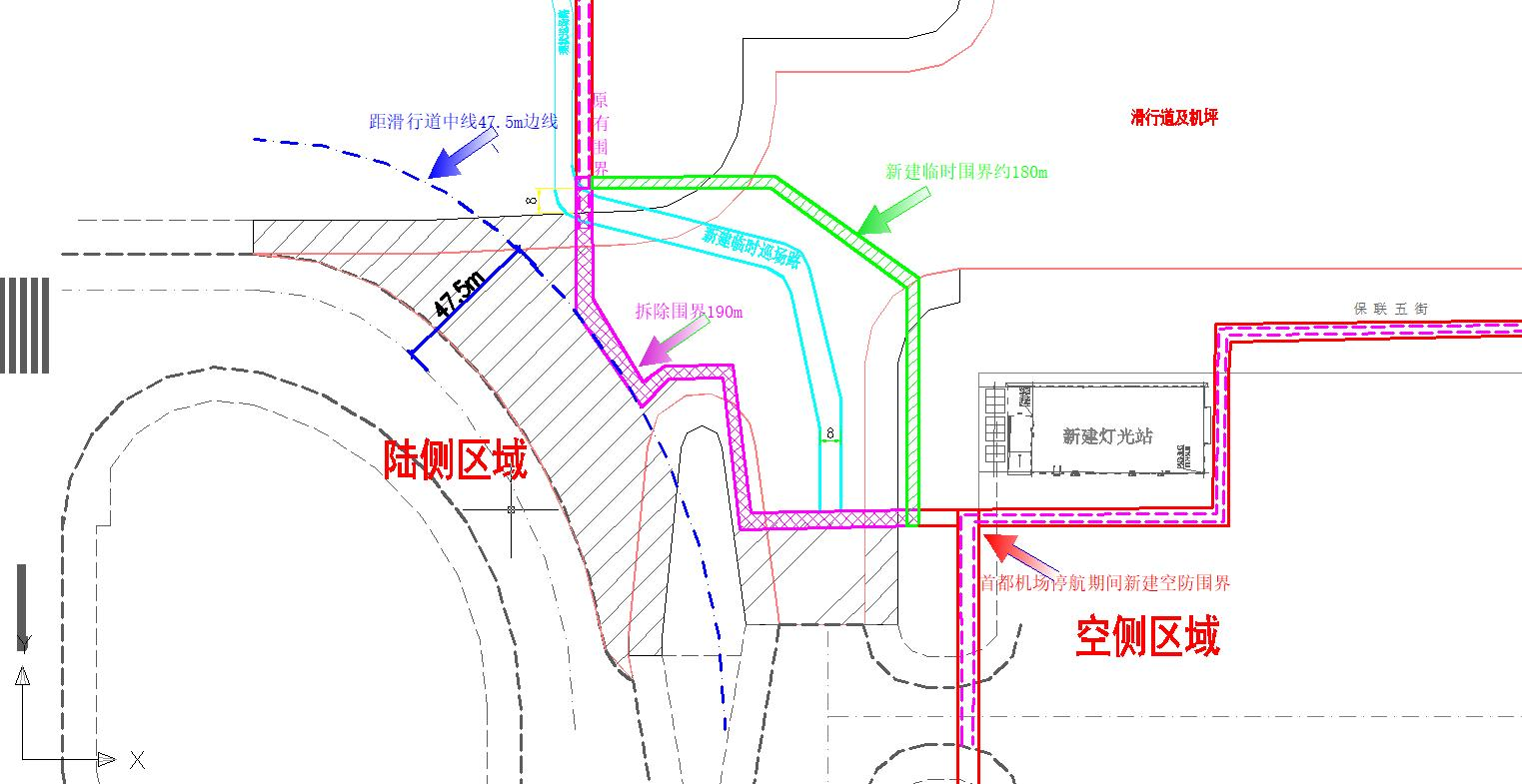 2、新建臨時圍界圍欄網(wǎng)為非空防圍界,經(jīng)機場驗收合格后,準(zhǔn)許拆除與新建臨時圍界并行的原圍界,具體位置見附件一中紅色所示部分。