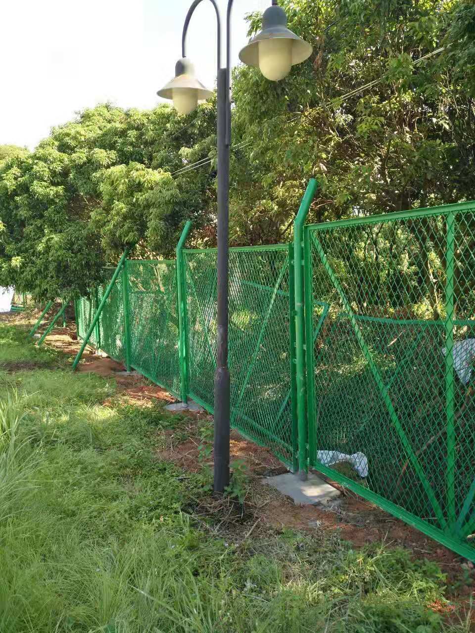 鋼板網(wǎng)隔離柵主要用于橋梁、公路、空地、機(jī)場(chǎng)等場(chǎng)地。主要原材料有鋼板網(wǎng)、方管、圓管還有一些配件包括螺絲等。常用鋼板網(wǎng)為100刀,即網(wǎng)孔50*100,板厚和梗后有2.0-5.0不等,橋梁用的防拋網(wǎng)需要厚一點(diǎn)的,空地用的可以用一般的就可以了。鋼板網(wǎng)隔離柵表面處理一般為熱浸塑,要求較高的可以先熱鍍鋅或者電鍍鋅再進(jìn)行熱浸塑處理,這樣使用壽命會(huì)更長(zhǎng)一些,特別適合用于一些潮濕多雨的地區(qū)。用作橋梁的一般是橋梁防拋網(wǎng)隔離柵,這種要求就比較高,鋼板網(wǎng)的網(wǎng)孔、板厚都會(huì)小一點(diǎn)厚一點(diǎn)。用作圍空地的,一般的跟框架隔離柵結(jié)構(gòu)大概相同,只是網(wǎng)片換成鋼板網(wǎng)片,折彎上面的網(wǎng)片換成刺繩,其余的尺寸和表面處理沒有區(qū)別。安平沃達(dá)金屬絲網(wǎng)制造有限公司專業(yè)生產(chǎn),廠家直銷。值得信賴!歡迎新老用戶來(lái)廠參觀考察訂購(gòu)鋼板隔離柵!
