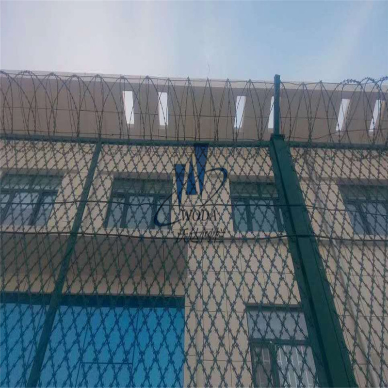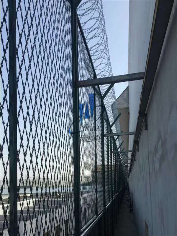 監(jiān)獄鋼網(wǎng)墻護(hù)欄隔離柵主要分鍍鋅,浸塑兩種,是以立柱網(wǎng)片加刀片刺繩制作而成。