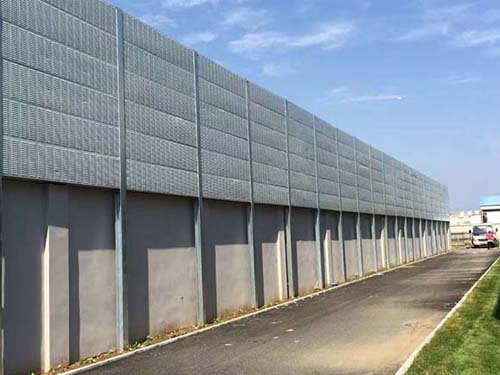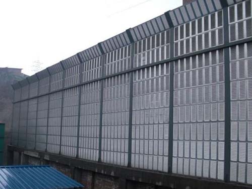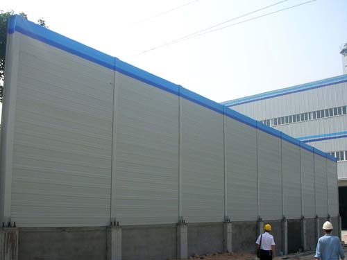 廠區(qū)隔音屏(聲屏障)主要由鋼結(jié)構(gòu)立柱和吸隔聲屏板兩部分組成,立柱是隔音墻的主要受力構(gòu)件,它通過螺栓或焊接固定在墻體或地面預(yù)埋鋼板上;吸隔聲板是主要的隔聲吸聲構(gòu)件,它通過高強(qiáng)彈簧卡子將其固定在H型立柱槽內(nèi),形成隔音墻。
