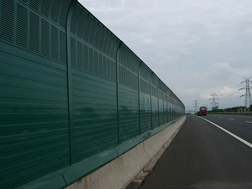 弧形聲屏障結構設計的目的一般是使從屏障頂部繞射的衍射聲得到衰減?;《刃吐暺琳系脑O計目的是噪音污染聲源不僅是可以從頂部繞射出去,同時也可以從中間甚至中下聲音傳播時就可以將聲音繞射,聲音折射出去,從而將聲音降低?;⌒温暺琳虾晚敳炕⌒胃粢魤Φ倪\用結合各地區(qū)不同的氣候條件,在結構設計時充分考慮風荷載。通過自動生產線,壓制凹槽以增加強度,使產品抵擋10-12級臺風,抵擋風壓300kg/㎡。